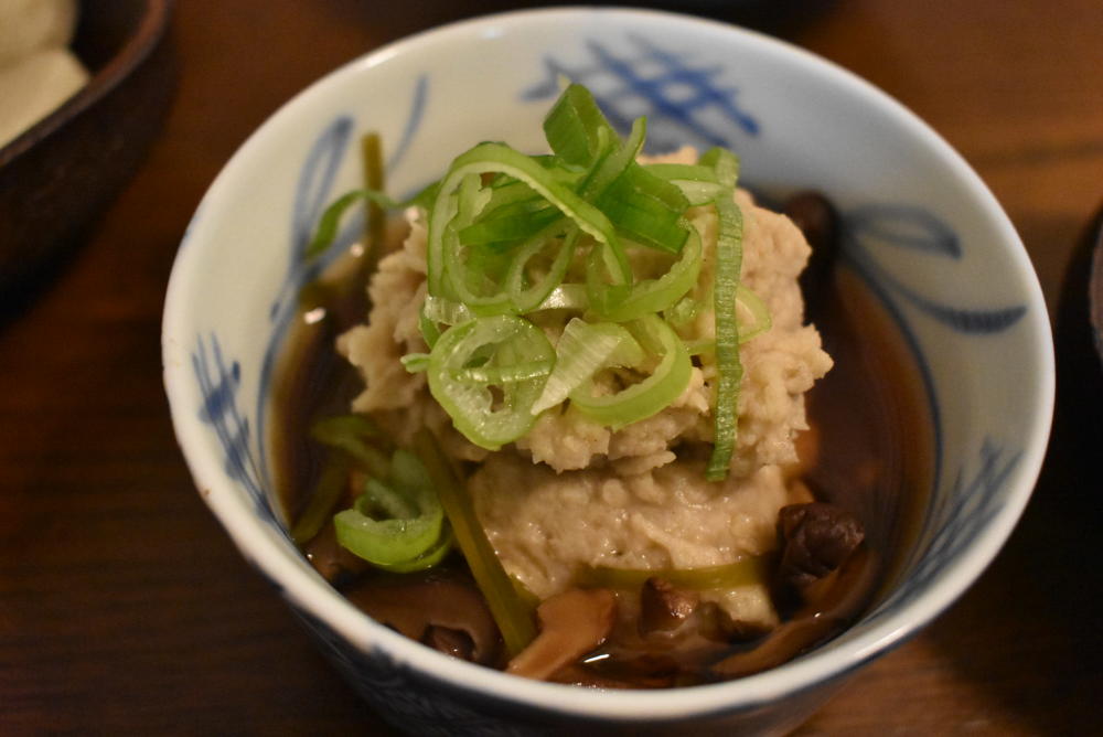 そば粉料理の王道、そばがき。そばつゆを器に張って。そばとは一味違うやわらかさは、胃腸が疲れている時でもよさそうです。