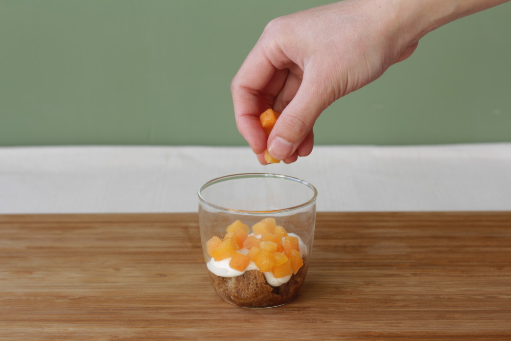 食感がよく、甘みの強い柿をデザートに。材料を層状にグラスに詰めるだけの、簡単スイーツです。