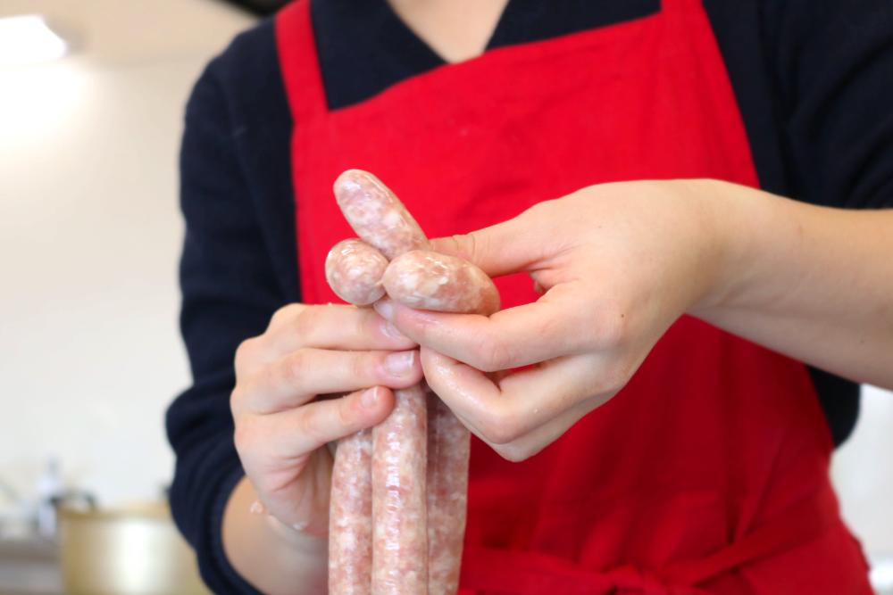 それではついに始まりました、手づくりウインナー体験! 当日は伊豆沼農産のスタッフさんが懇切丁寧に教えてくれます。