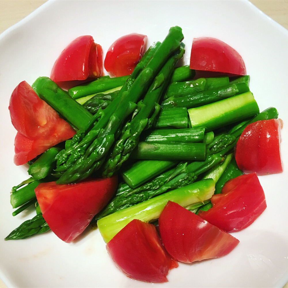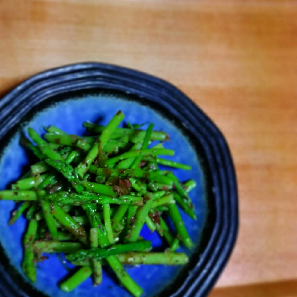 安東さんの農家飯、アスパラの梅肉和えです。アスパラと梅の相性は、栄養的にもいいみたいですよ。「暑くなって体がだるい・・・」という時は、ぜひお試しください。