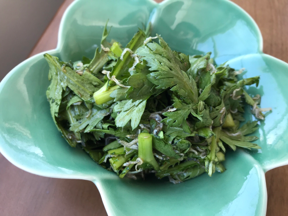 ちりめんじゃこ使って、バルサミコとサザエ出汁醤油とケッパーいれて、春菊と和えてみました。塩加減いい感じ!たくさんあるので、あれこれ味のベースとして使っていきます!