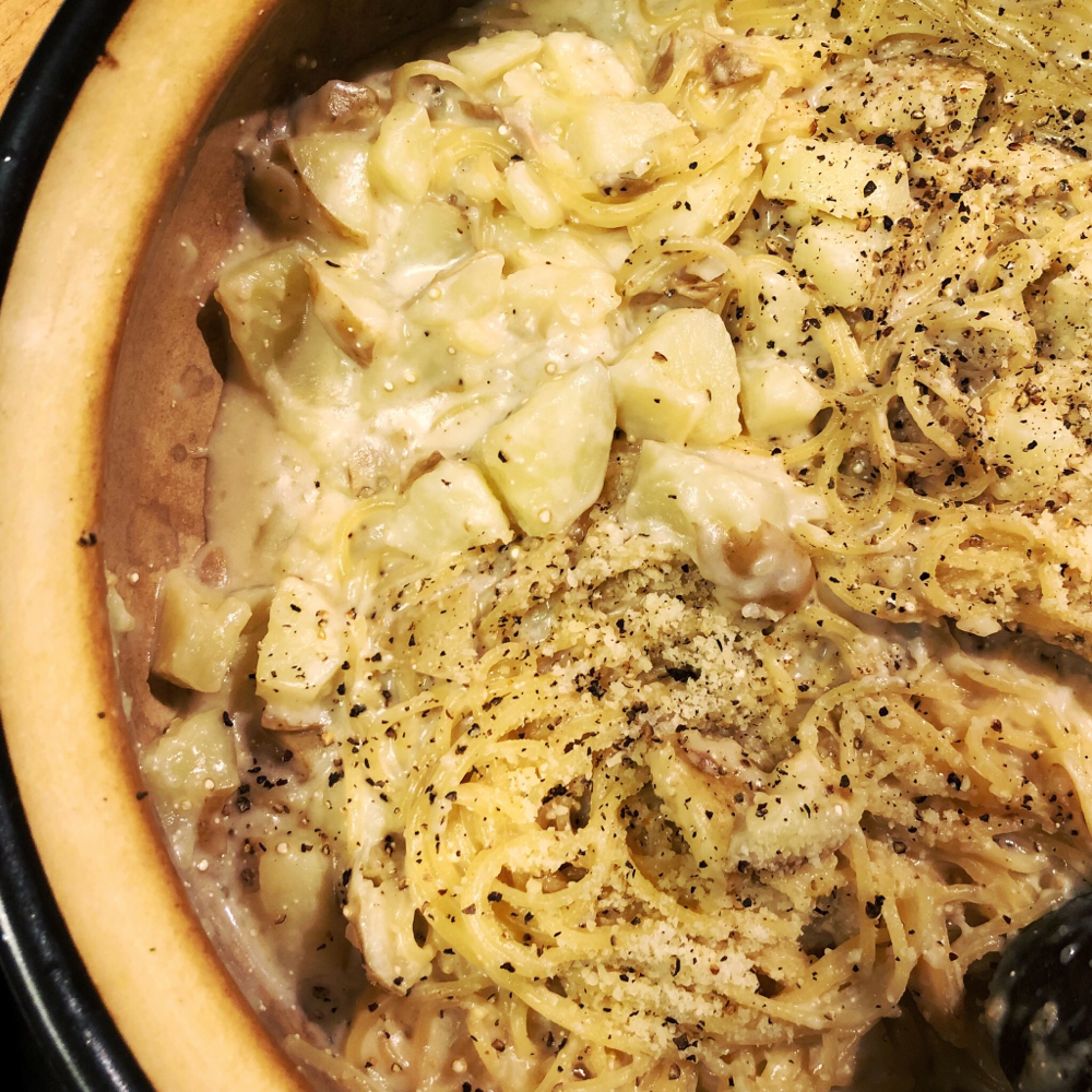 デジマカルボナーラです( ´艸`)濃厚なくり野菜がまったりカルボナーラにぴったりでした♪