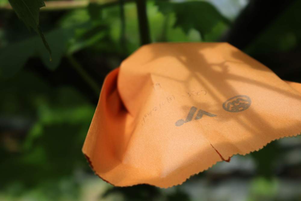 除雄を終えた房は、交配のときまで他の花と受粉しないように袋をかぶせておく。