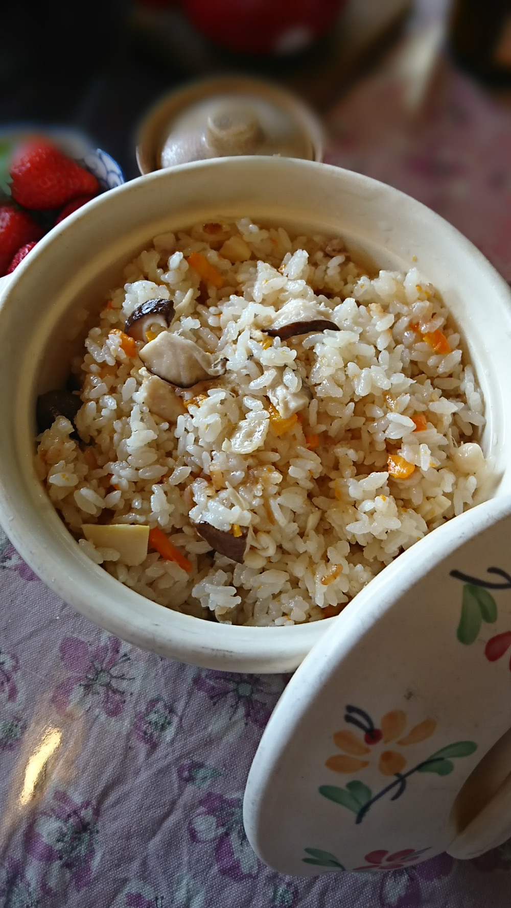 こっそり炊き込みごはんをつくろうと思っても、匂いでバレます(笑) しいたけのだし、最高です。