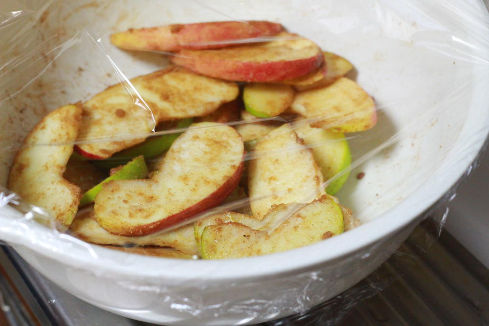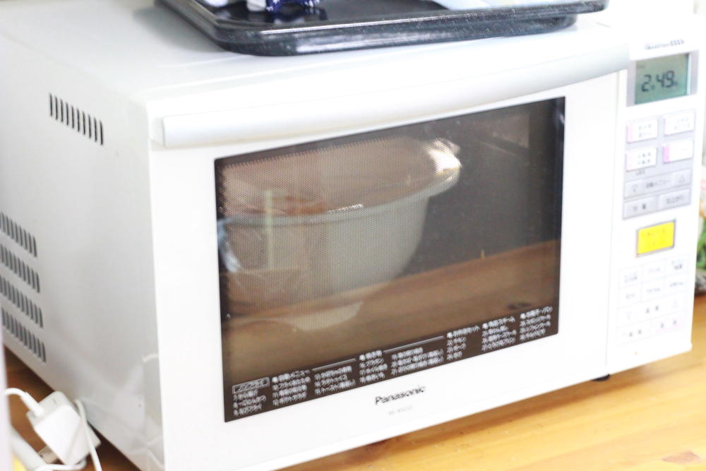 リンゴから水分が出てくるまで、レンジで2〜3分温めます。