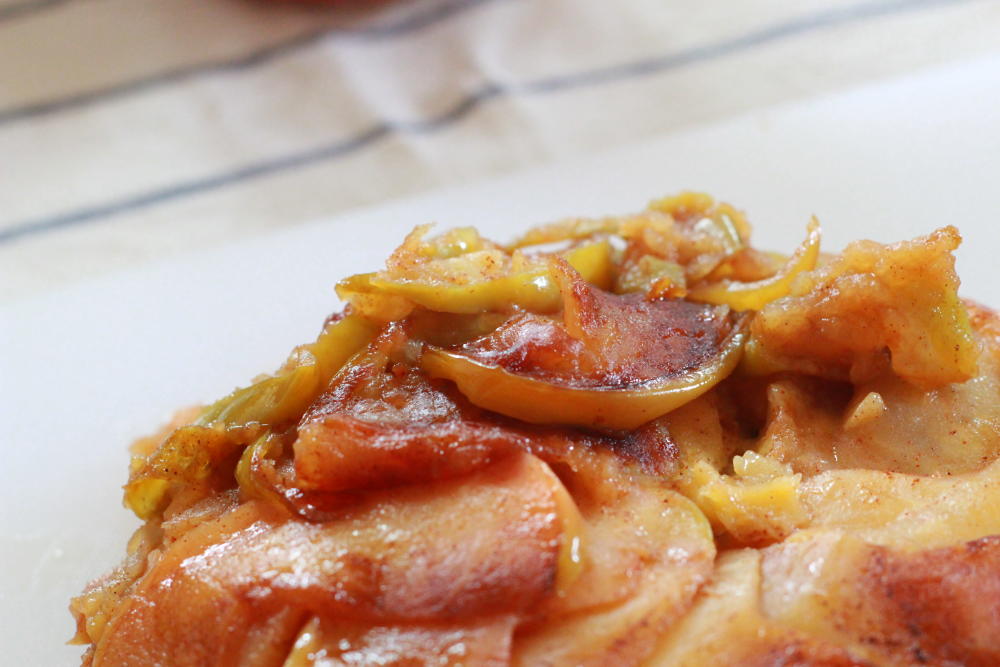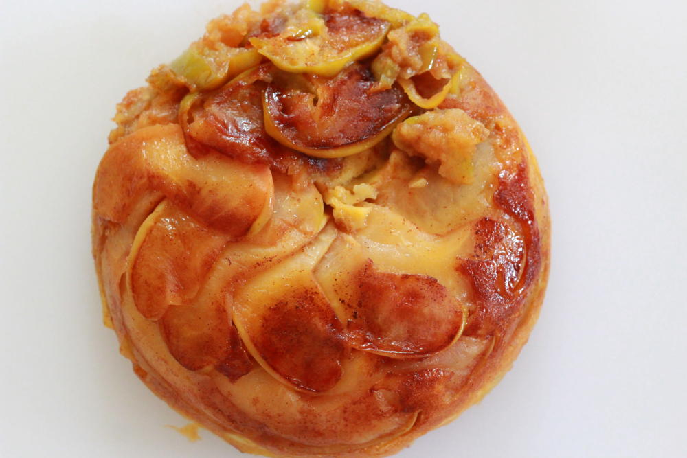 次作るときは、サンつがるとブラムリーは別々にレンジにかけ、ブラムリーの加熱時間をやや短めにしたら外見もより美しく焼けるでしょう。