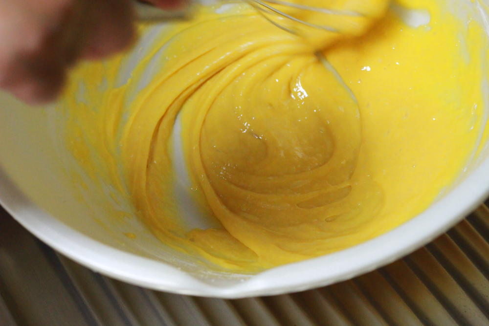 砂糖30gを入れて、引き続き混ぜ混ぜ。