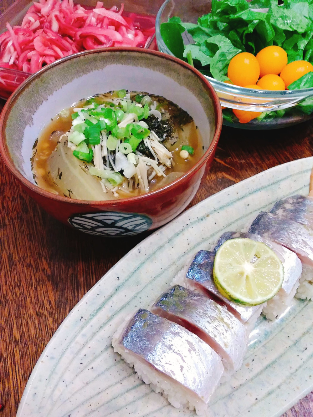 紫の大根おろしカボスや酢をかけるとピンク色に変わりました😄💞今日は主人の誕生日なので食卓が華やぎ✌